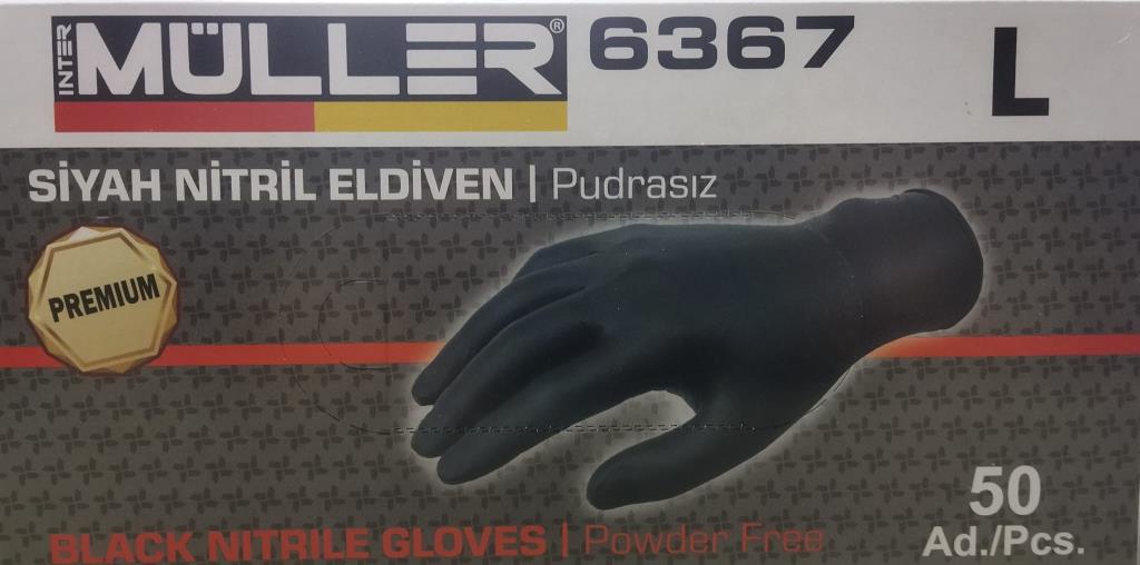 İnter Müller 6367 L Premium Siyah Nitril Eldiven Pudrasız 50 adet